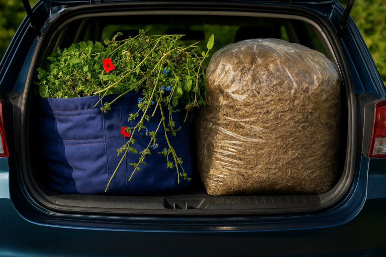 Saubere Grünabfall-Anlieferung: Gartenabfälle im Kofferraum